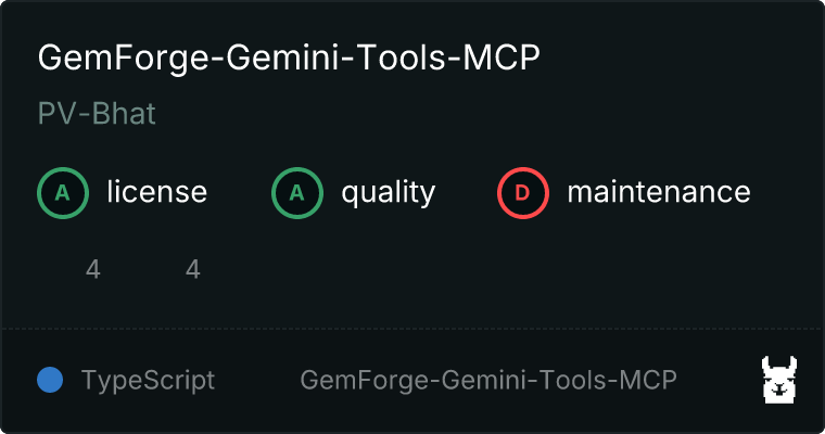 docker run -e GEMINI_API_KEY=your_api_key ghcr.io/pv-bhat/gemforge:latestUse our MCP.so Directory listing for integration instructions.