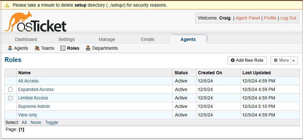 Within the admin panel, we will click on Agents and go to roles, here you can choose to add a new role for your users and how much access they have.