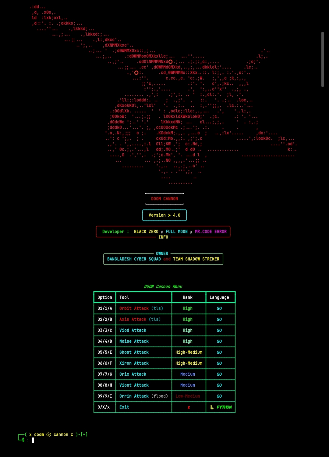 DOOM CANNON is a hybrid CLI toolkit built with Python π and Go π.