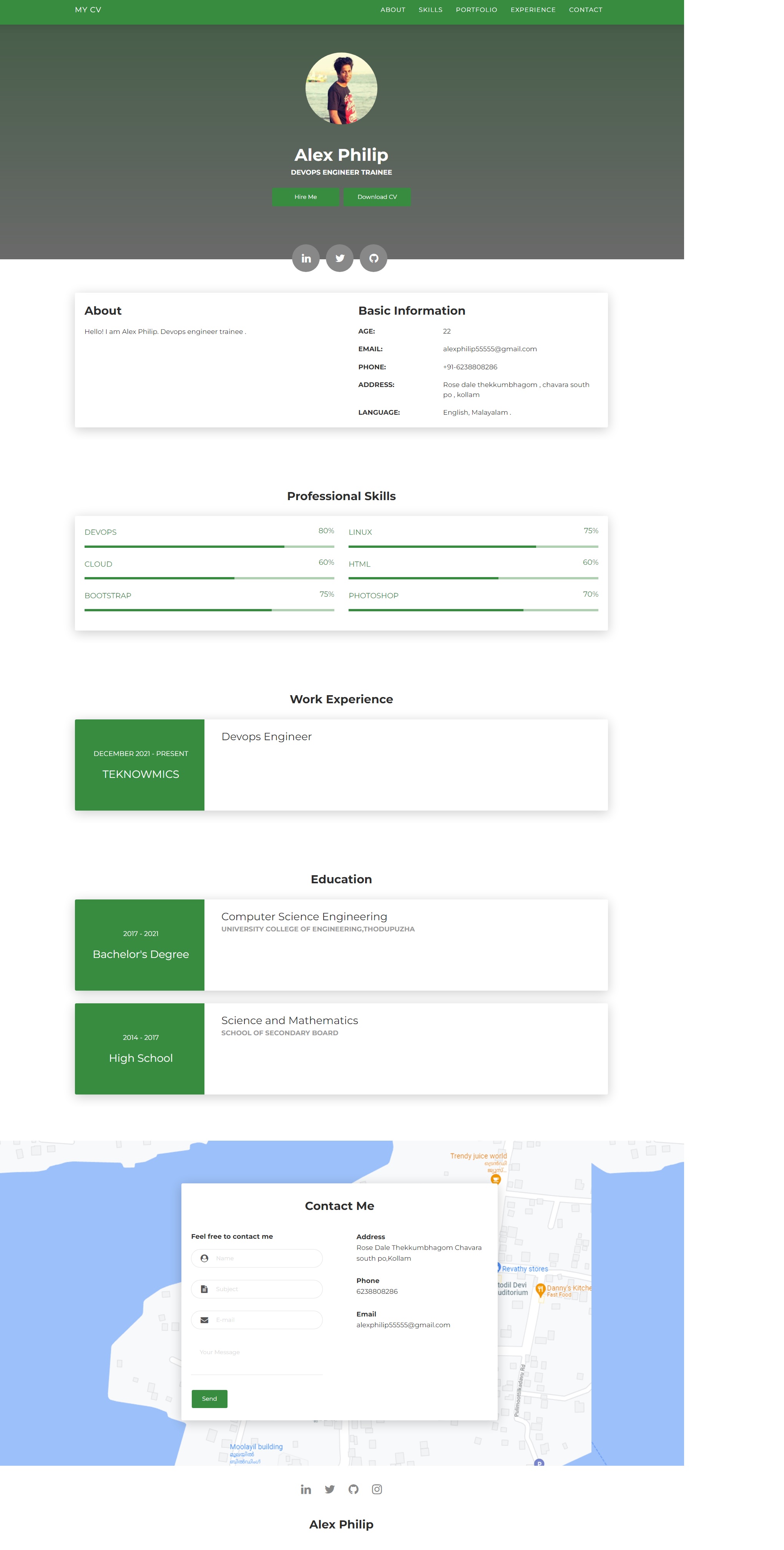 It's just HTML based static website for my own "alexphilip.tech (Domain purchased from Hostinger)", I downloaded a template from templateflip and I Modified it as per my requirement and I hosted my website on GitHub for lifetime free so this repo is my website server.