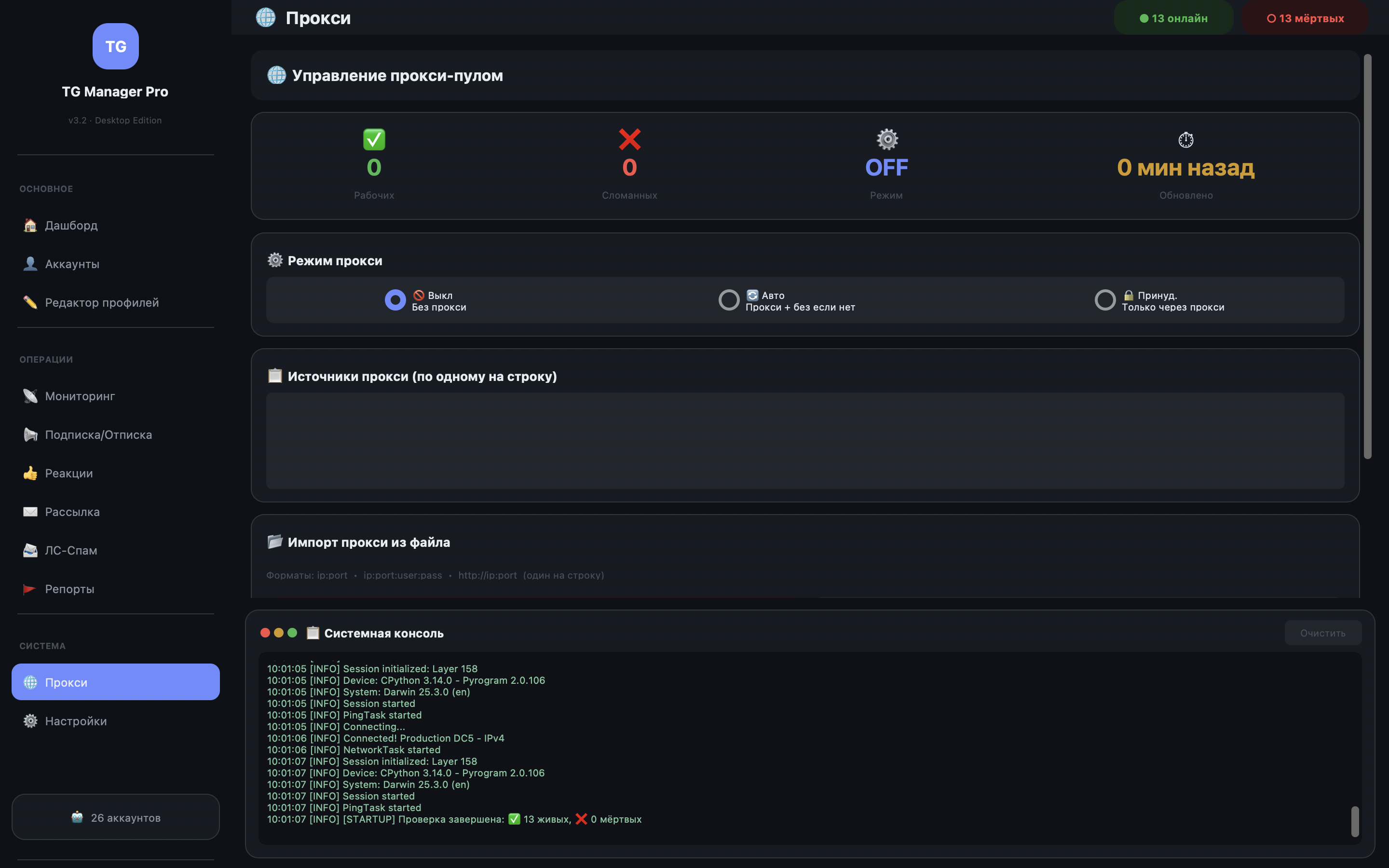 | 📁 .session файлы | Файлы .session от других инструментов |