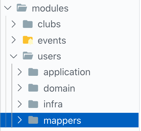 This directory has no direct reference in the architecture diagram and is more of an implementation detail of DDD itself. This code is our translation layer that can translate the representation of objects between different layers: domain, persistence, and DTO (data transfer objects).