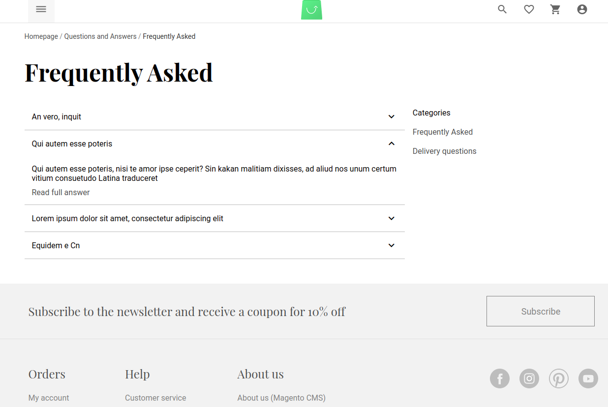 Implement Amasty FAQ extension in Vue Storefront! Comes with a sample layout that you can easiliy customize.
