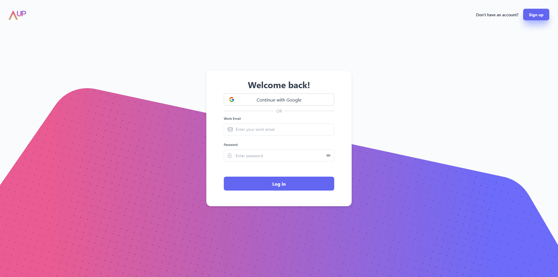 Strona przyjmuje adres email i hasło. Hasło musi składać się z przynajmniej 8 znaków i zawierać jedną dużą litere.