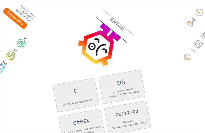 To receive one piece of food, the player needs to browser-mine for 15 minutes of time. The maximum amount of food nimipet can eat per day is 200 pieces.