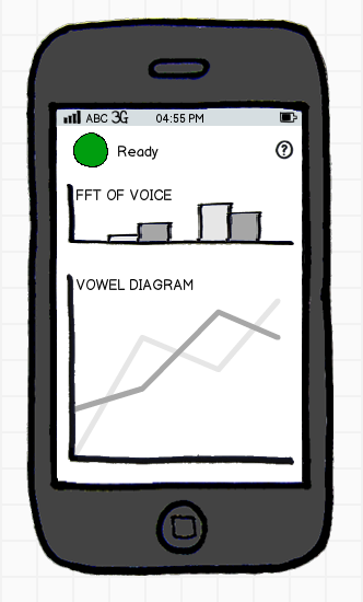 The program starts in green state. When the user starts talking (i.e. RMS goes above 0dBm for at least 0.1 seconds), the program goes into listening state and records the sound. When the user stops talking (i.e. RMS goes below 0dBm for at least 0.1 seconds), the program returns to ready state and draws graphs.