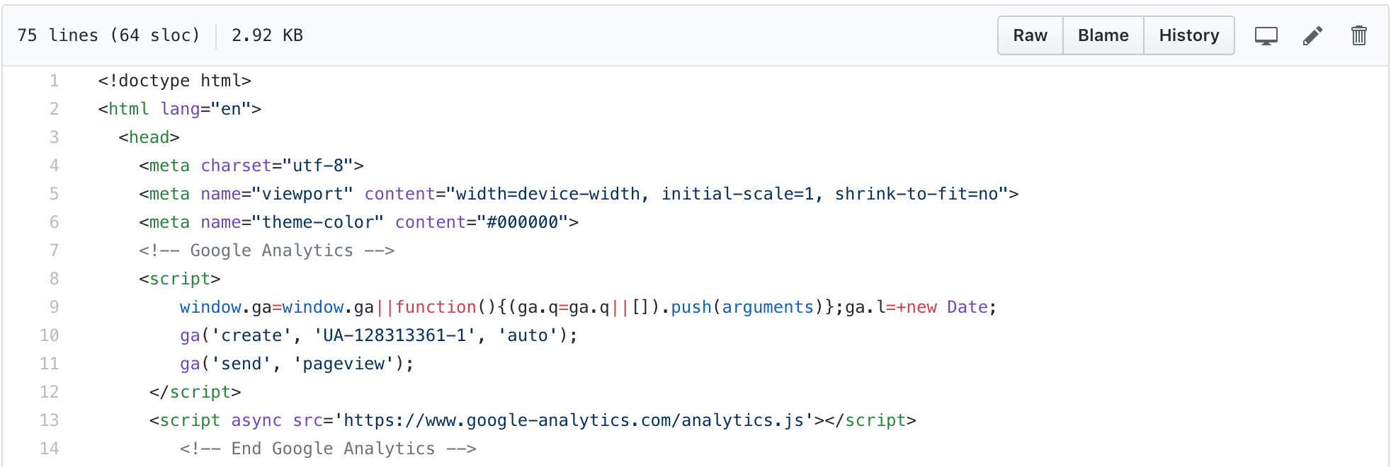 Lastly, in line 10 of the head tag there is a call to ga(). The second parameter is for your tracking ID, so copy yours into this spot and boom, your page views are now being tracked in real time. If you want to look at this just go to the menu on the left and click 'Real-Time'.